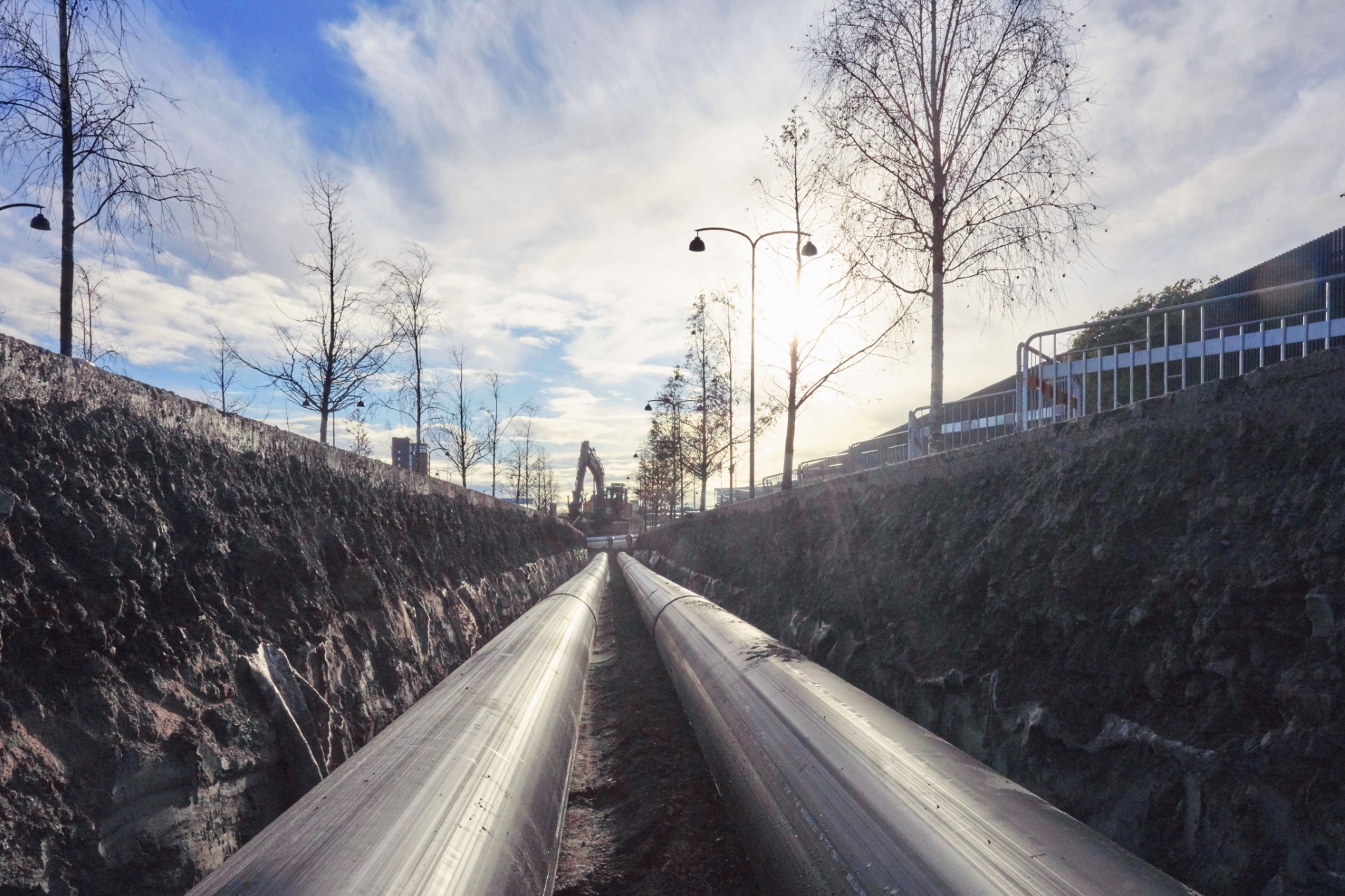 District cooling works in such a way that the water is cooled down at a central plant and then transported to connected properties via a pipeline system. We follow several standards and regulations when developing our pipes for district cooling, including EN 12201 and Nordic Poly Mark.
