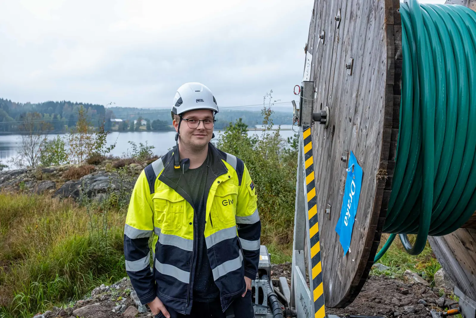 Han har selv tidligere jobbet ute som energimontør og jobber nå i en rolle som prosjektingeniør. Legging av ny stikkledning til Storøya er hans første prosjekt som bruker SESU-cable til trekkerør.